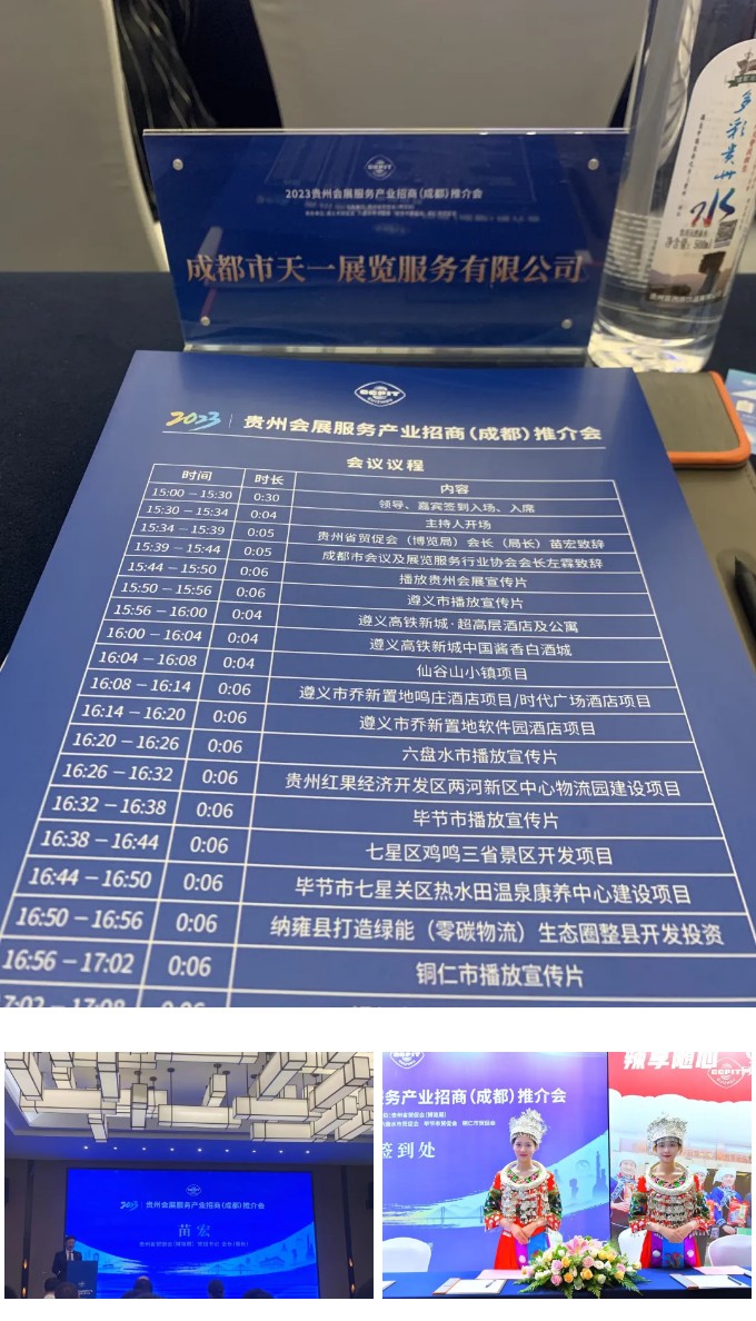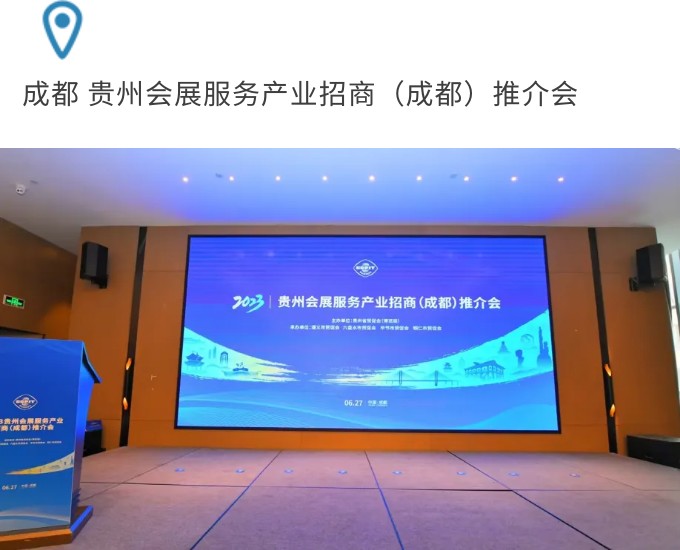 主要内容:组委会派出一位小伙伴参加在成都瑞酒店举办的贵州会展服务产业招商(成都)推介会。与相关政府部门及行业人士接洽交流,了解贵州优质会展及文旅项目。