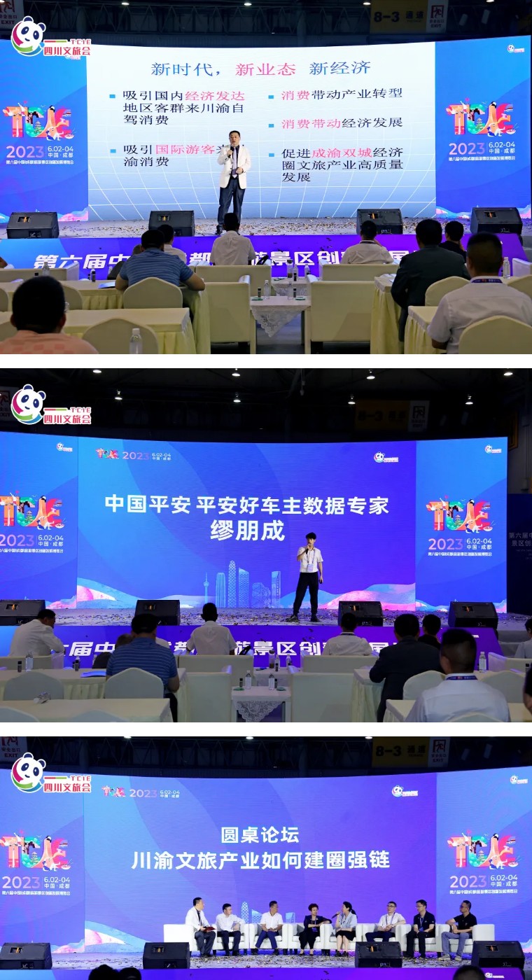 此次论坛会议主题为“ 成渝双城自驾游如何破局”。会议上先由全国工商联旅游业自驾分会副会长付岚发表以《成渝双城自驾游如何破局》为题的演讲报告、后由中国平安 平安好车主数据专家缪朋成作《大数据画像,巴蜀文旅新产品诉求》分享。紧接着以“川渝文旅产业如何建圏強链”为主题开展圆桌会议讨论。