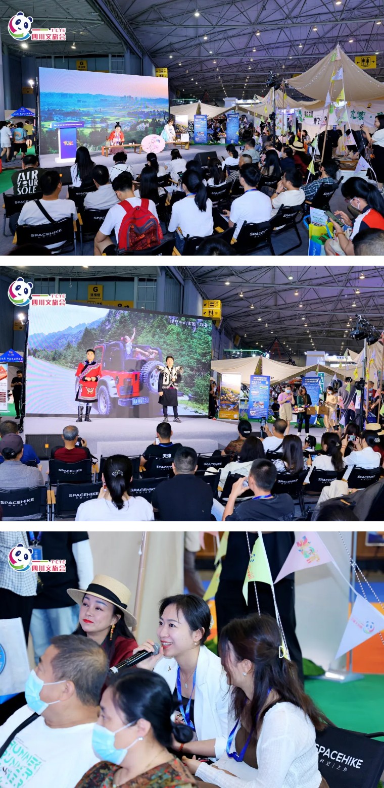 通过景区+露营+文化的互动营造,为文旅爱好者带来一场安逸游四川的文旅嘉年华。已吸引了峨眉山、九寨沟、黄龙、若尔盖、光雾山、蜀南竹海、兴文石海、毕棚沟等川内优质景区参展,在现场集中显示旅游资源,实现人们不出远门便能玩遍家门口的梦想。