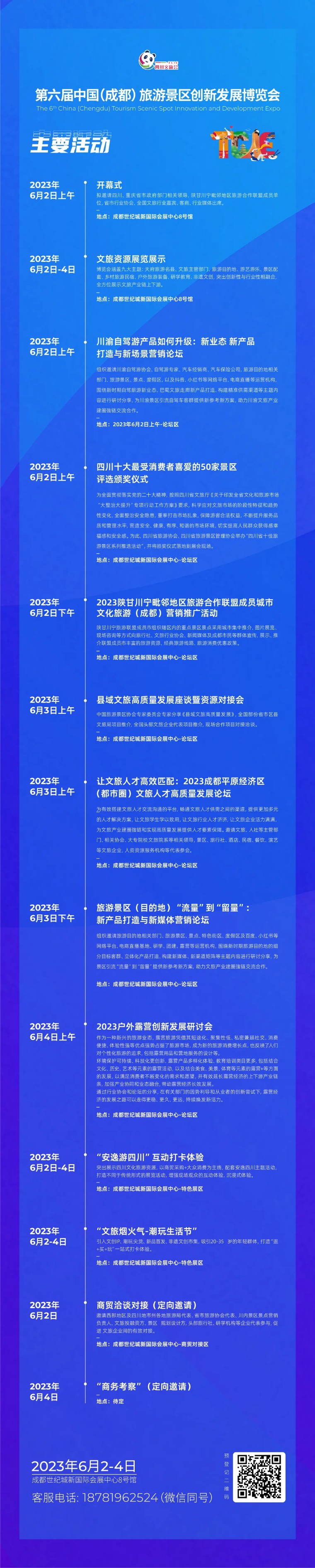 为深入贯彻落实习近平总书记来川视频重要讲话精神,全面贯彻党的二十大及省第十二次党代会精神,推进文化旅游深度融合发展,打造我省重点文旅品牌和文化走廊,加快建设世界重要旅游目的地。第六届中国(成都)旅游景区创新发展博览会(以下简称:第六届四川文旅会)将于2023年6月2-4日在成都世纪城新国际会博览会展中心举行。此次博览会是由四川省文化和旅游厅、重庆市文化和旅游发展委员会指导,四川省旅游景区管理协会主办,成都市天一展览服务有限公司承办,省市各大商协会协办的文旅类品牌展博览会。