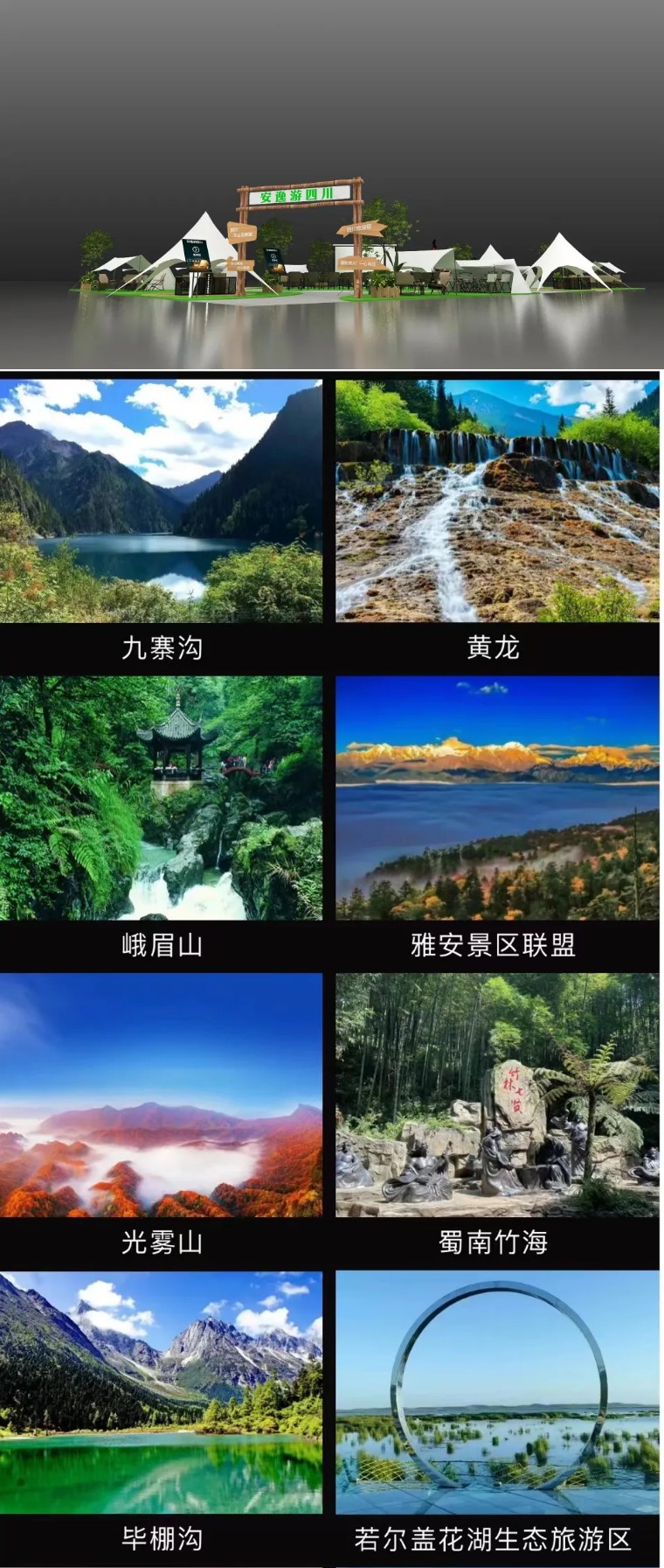 值此六月仲夏之际,为进一步刺激暑期旺季消费,博览会特别推出“安逸游四川IP品牌计划”,通过景区+露营+文化的互动营造,为文旅爱好者带来一场安逸游四川的文旅嘉年华。已吸引了峨眉山、九寨沟、黄龙、若尔盖、光雾山、蜀南竹海、兴文石海、毕棚沟等川内优质景区参展,在现场集中显示旅游资源,实现人们不出远门便能玩遍家门口的梦想。现场还将有峨眉山茶艺表演、理县特色演出、***非遗体验等诸多互动活动