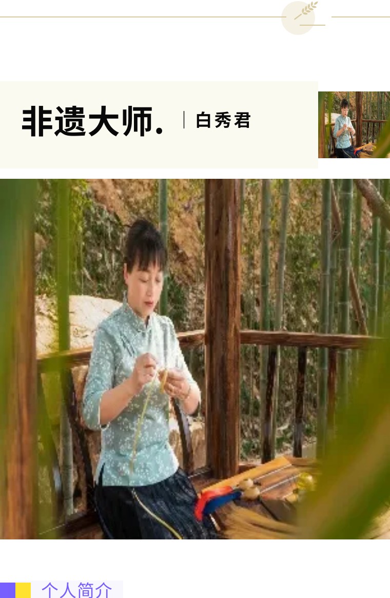 白秀君,***道明竹编。市级代表性传承人。师承***非物质文化遗产项目道明竹编《赵思进大师》,成都崇州竹制品厂高级技师,四川省乡村旅游协会会员。四川文创联盟传统工艺委员会、委员。2020年濯锦工匠会会员、2020年12月中旬国际艺术教育联盟非遗文创专家委员会专家,四川教育厅主办高等专科艺术家创艺称号,成都市民间文艺家协会会员。成都市对外科技交流协会非遗与手作工委会会员。