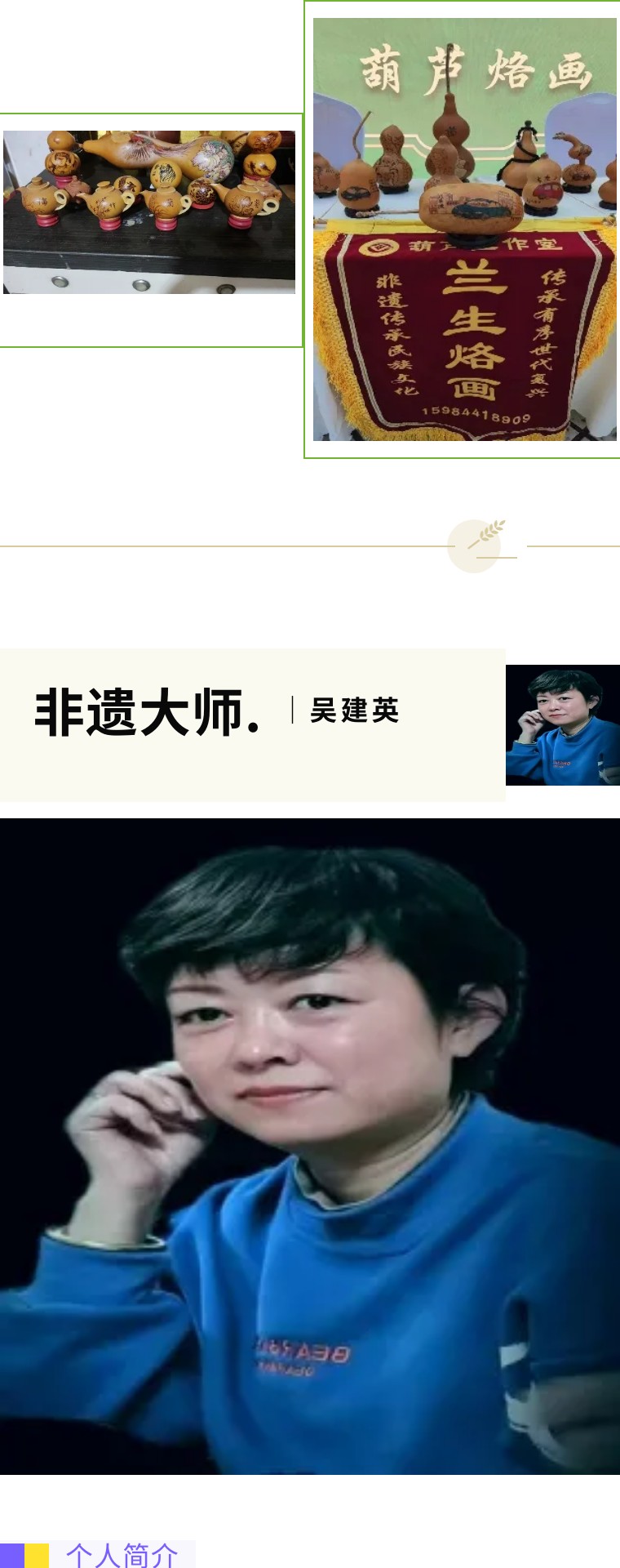 吴建英,艺名:建羽,接触内画至今已有26年,先后拜张铁山先生和董雪先生为师。中国鼻烟壶内画学会会员、四川省首届农村手工艺大师。成都市民间文艺家协会会员。成都市新津区政协五津书画院高级书画师,成都市新津区民间文艺协会副会长,成都市对外科技交流协会非遗与手作工委会会员。成都市新津区内画非遗传承人。国家一级美术师。2017年创建了自己的内画工作室。