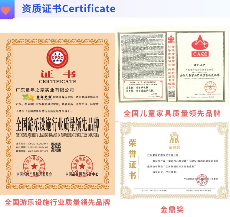 童年之家始终秉承“美好童年·匠心质造”的企业宗旨,主营业务涵盖户外文旅、学前教育、室内乐园、水上乐园四大板块,为幼儿园、托育园、市政公园、房地产、田园综合体、旅游度假区、水上乐园以及室内游乐场提供各类设施设备一站式服务,是中国游乐和幼教设备行业的领跑者。
