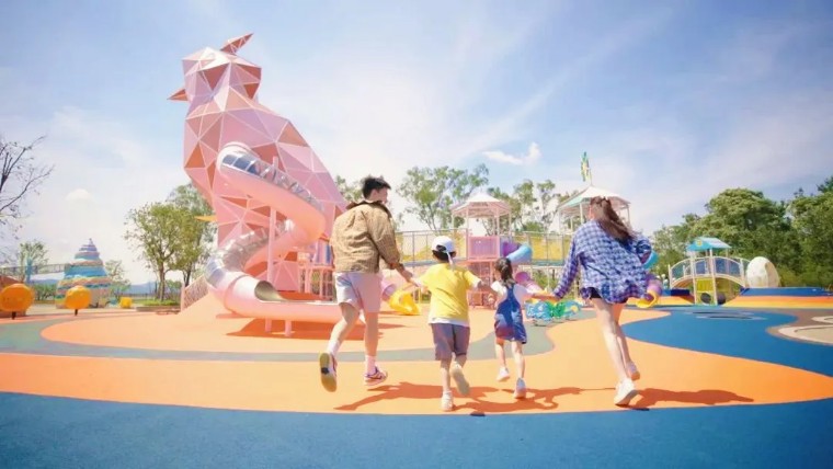 在造型和布局上,乐园将鸟主题、海洋主题形象与游乐空间创意整合,以 “ 沉浸式自然体验 ”为触发,设置仙鹤谷、蟹皇堡、聪明角、冒险岛、秋千岛等游乐主题区,动态的水雾广场结合声光电的效果,动静结合,带来丰富趣味的游戏体验的同时,带领孩子们认识生物种群并激发想象力。