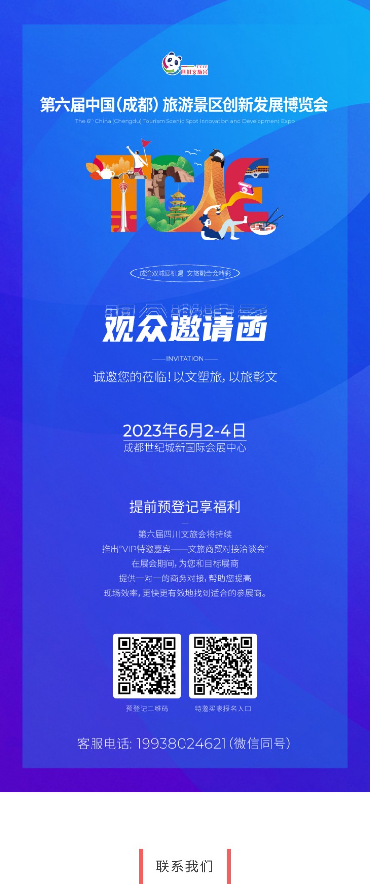 第六届中国(成都)景区创新发展博览会将于2023年6月2-4日在成都世纪城新国际会展中心举办。本届展会亮点有紧扣国家战略、区域联动增加、参展时实效落地、展场设计呼应。展会现场还将开展涵盖展览展示、项目对接、互送游客、线路发布等诸多活动。